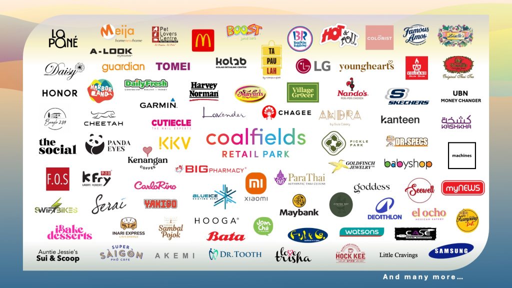 Coalfields Retail Park features a thoughtfully curated mix of anchor and key tenants, including Village Grocer, Harborland, Serai Seafood Restaurant, Blue Ice Skating Rink, Skechers, Decathlon, KKV, Pickle Park, Panda Eyes, Harvey Norman, and Maybank. Other exciting line-up of local and international brands, including popular favourites such as McDonald’s, Kanteen, The Social, Canton Boy, La Pane Pizza, Andra by Gula Cakery, Hock Kee Kopitiam, Little Cravings, Volcano Shabu Shabu, Baskin Robbins, Fish & Co., The Colorist and Carlo Rino among others.
